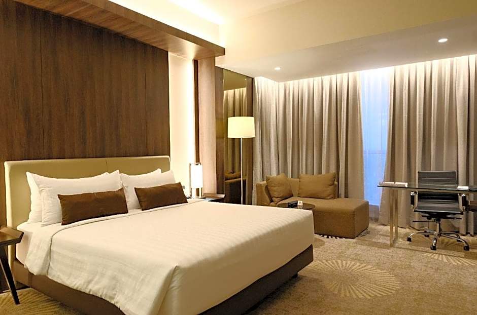 Room offers additional space and features a small sofa. Guests also get free access to the Executive Lounge with snacks and refreshments on the twelfth floor.